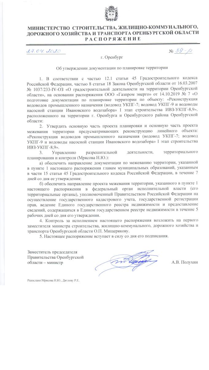 Распоряжениее Министерства строительства Оренбургской области от 26.03.2020 № 31 - р.